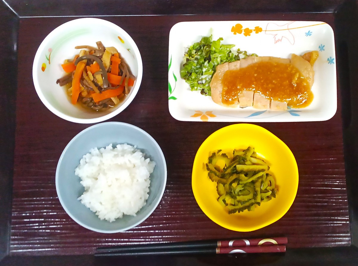 ポークソテー味噌味  ゼンマイの煮物