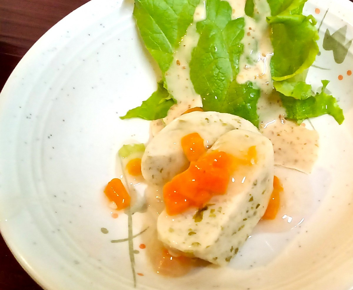 ふんわりとした「しんじょ」にやさしい中華あんをかけることで