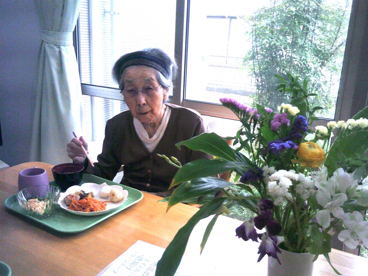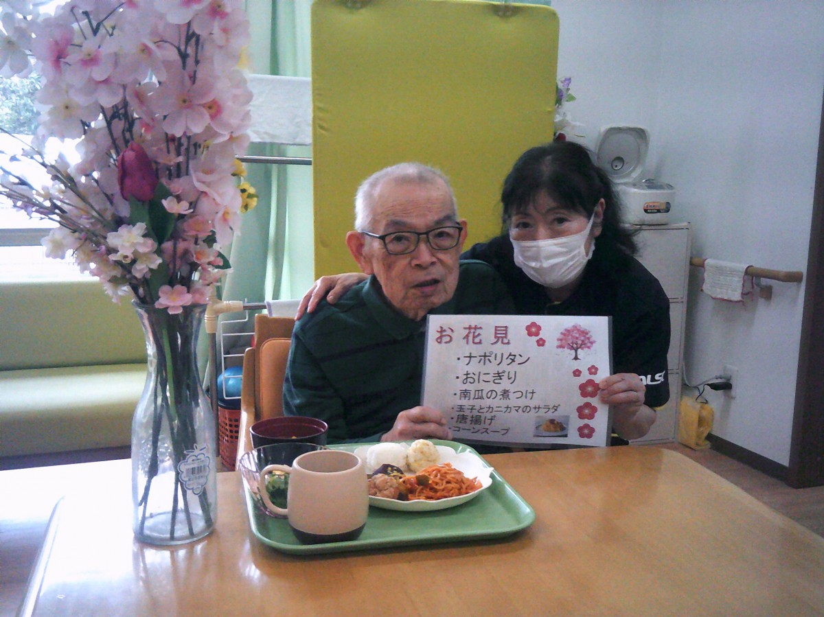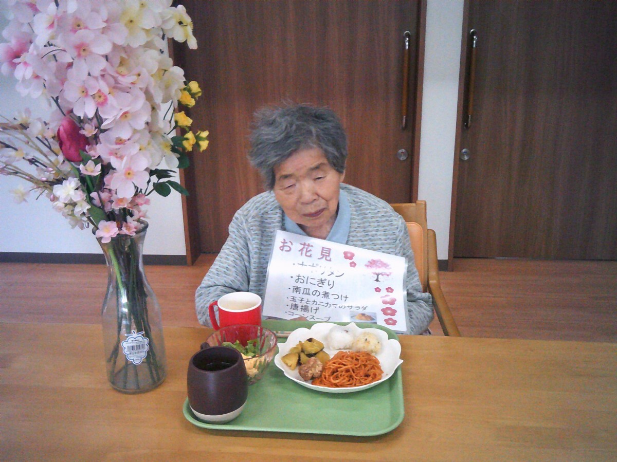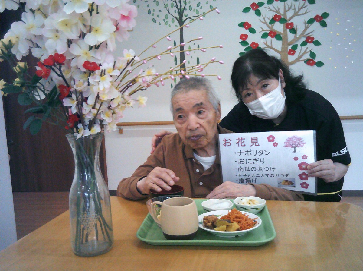 今日は施設内でお花見(昼食会)を行いました。 昼食を召し上がられているご様子をお知らせいたします!!
