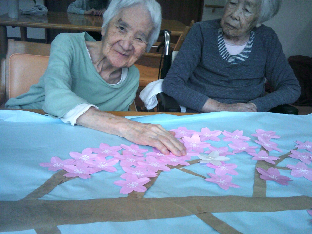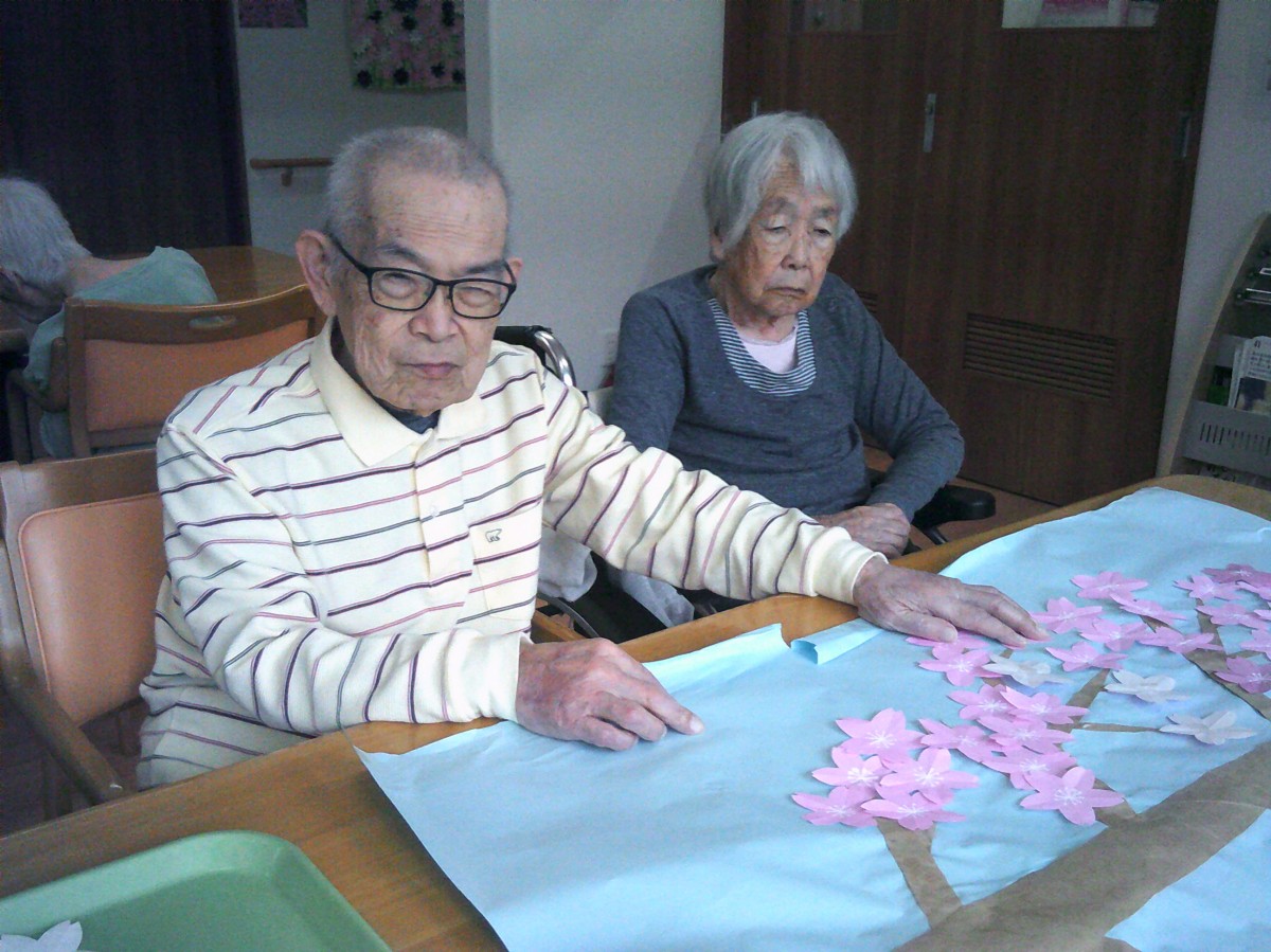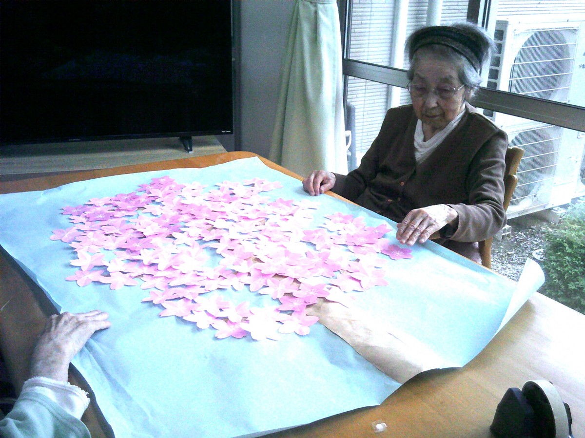 今日は桜の花????の貼り絵を行いました。 貼り絵をされているご様子をお知らせいたします!!