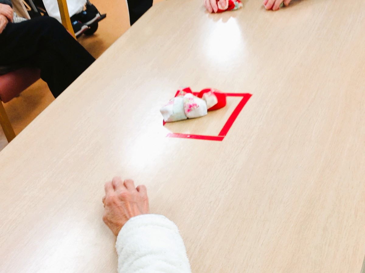 瀬戸際の勝負が楽しめるテーブルカーリング、枠の中にお手玉を投げ合い、どれだけお手玉を多く残せるか…これを競い合っていきます