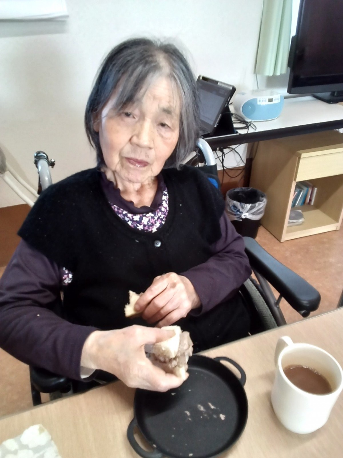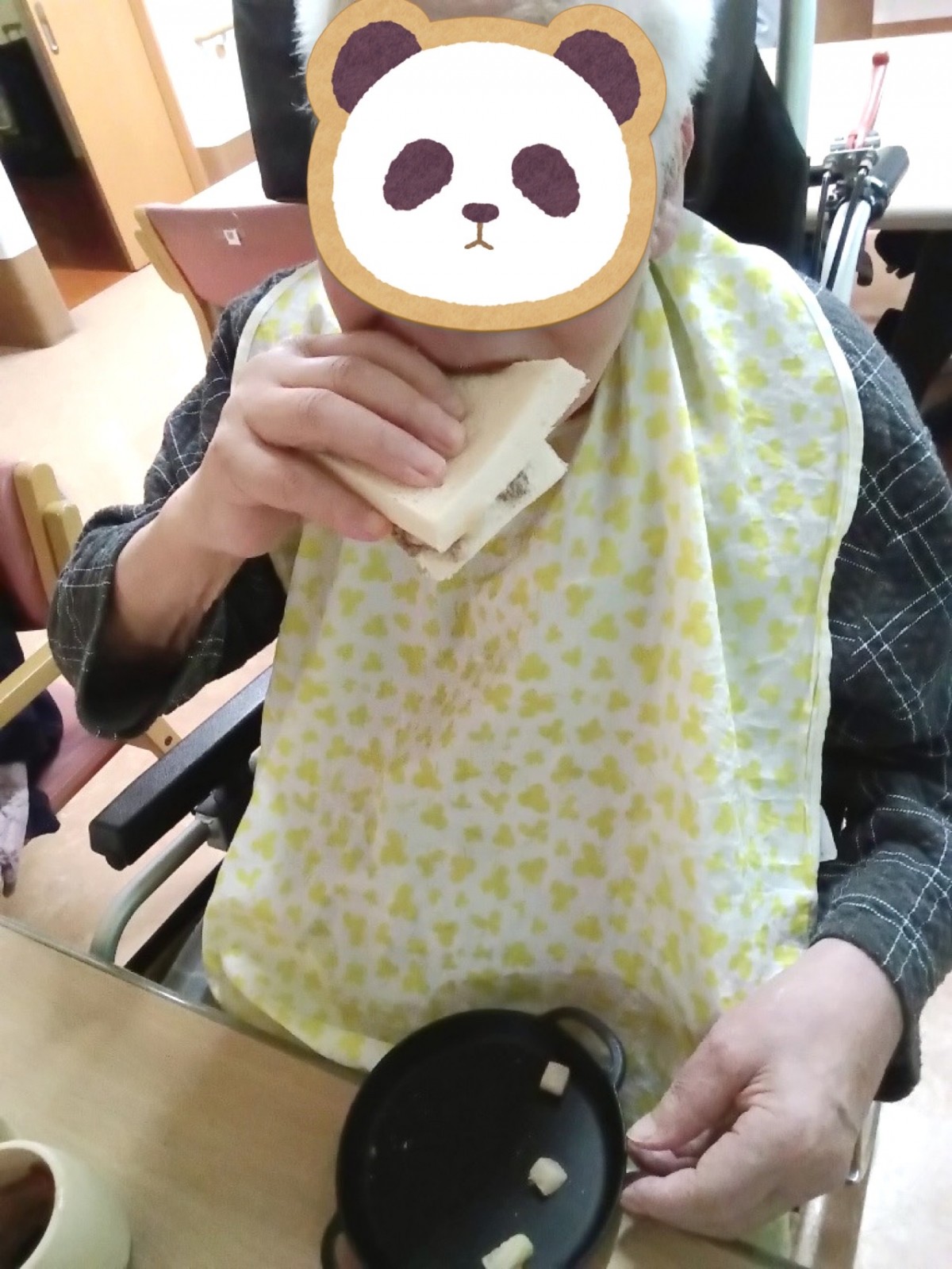 豪快にフルーツサンドを掴んで口に放り込むU様