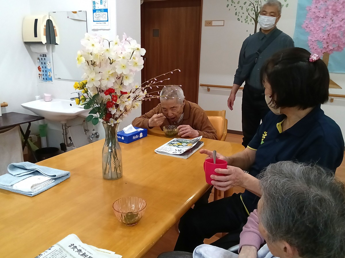 今日はお花見の時におやつに抹茶ゼリーを作りました。 召し上がられているご様子をお知らせいたします!!