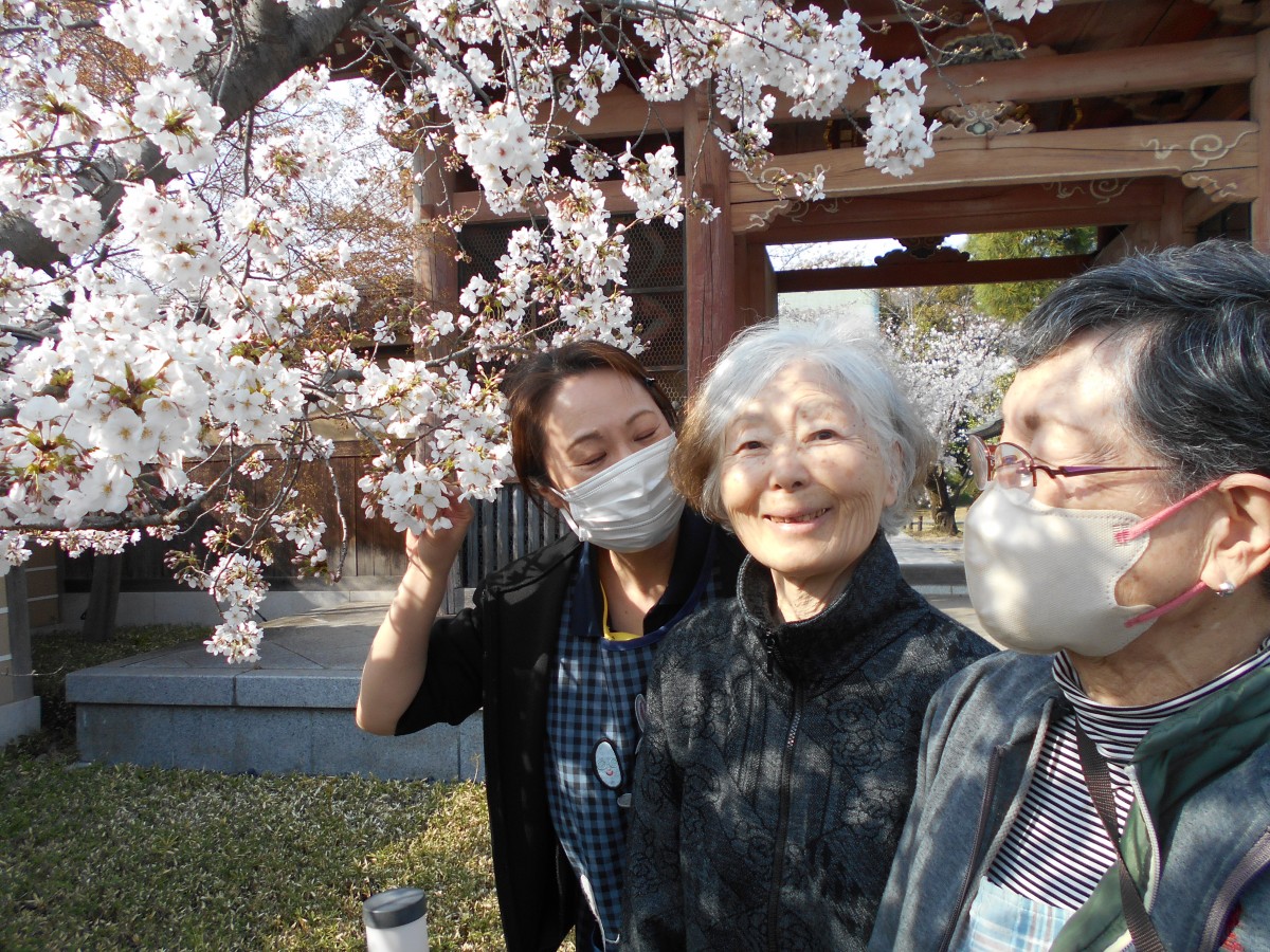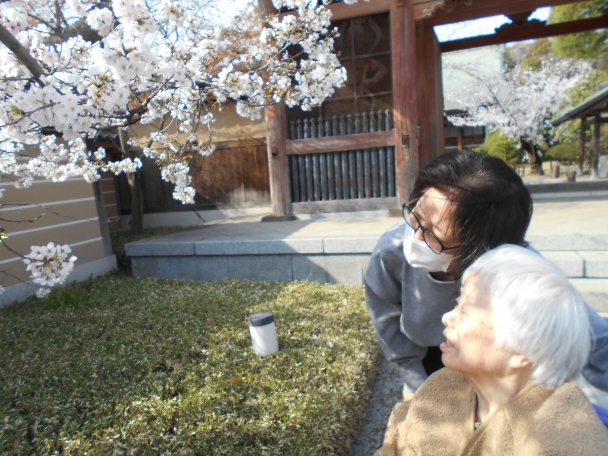 桜の咲いている位置が低く、車椅子のご利用者様も近くで桜が見られました♪