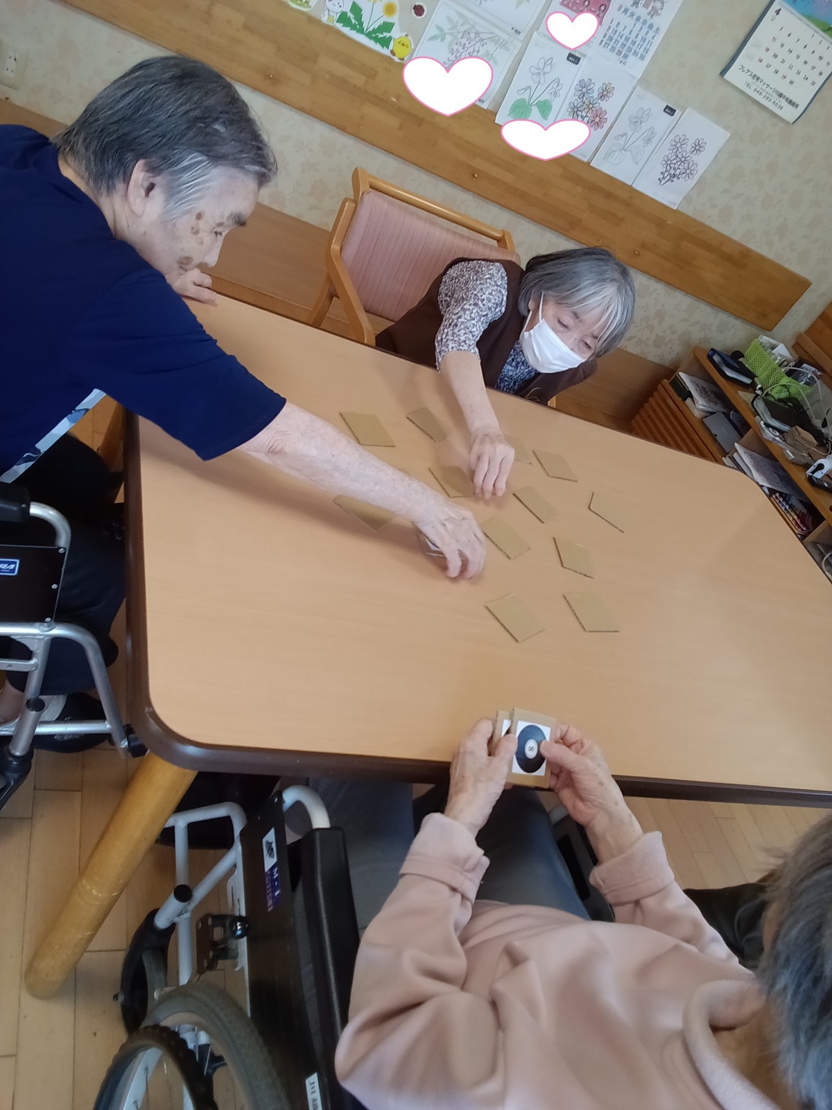 また、以前からご利用されているご利用者様が新しくご入居されたご利用者様に対して、わからない事を優しく教え合う場面も見られ、助け合いながら過ごされる様子が見られます。♥