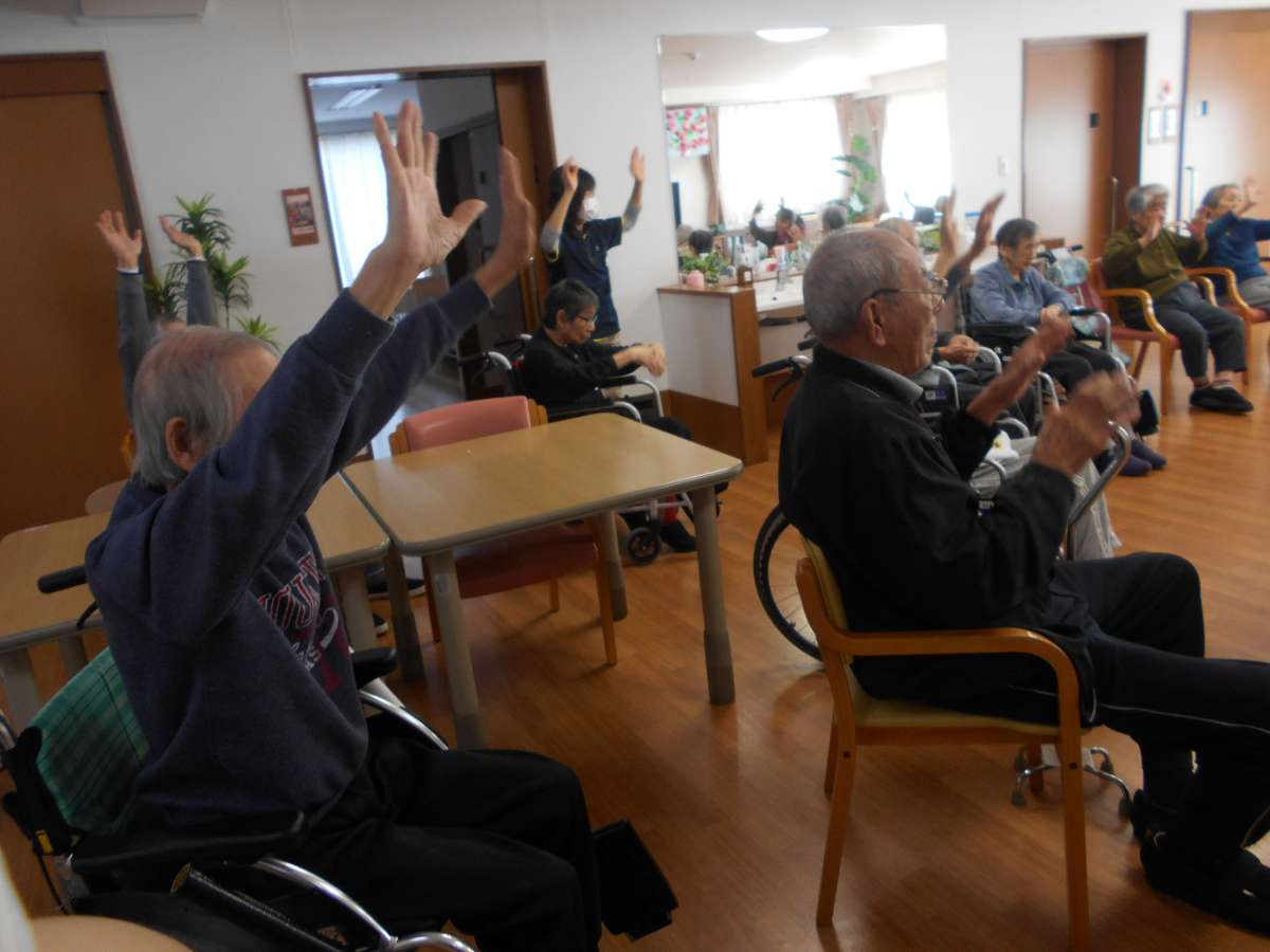 今日の午前中施設の中で講師を招いて≪いきいきリズム体操≫を行いました。