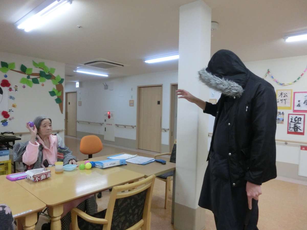 ちなみに今回の鬼役である職員は身長約2mの『通称:クマ様』です。『棍棒』ではなく『警棒』を所持。『鬼の面』と『衣装』を『現代風』にアレンジ。