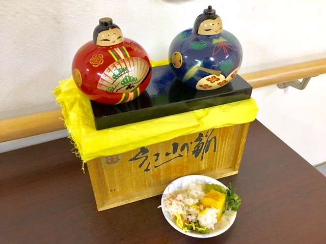 介護付有料老人ホーム みんなの家・東浦和3のとある入居者様がひな人形を持参されており『施設で飾ってほしい』というご希望のもと、飾らせて頂きました。大事に大事に木箱に入っている『紀州のお雛』だそうです。