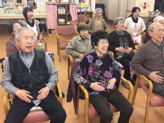 先生に注目して皆さん視線をそらさず真剣に参加しています