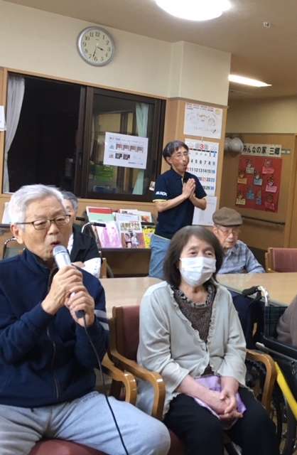 やはり職員も利用者様も恥ずかしそうにされていますが、普段の体操で歌っている曲や懐かしい曲