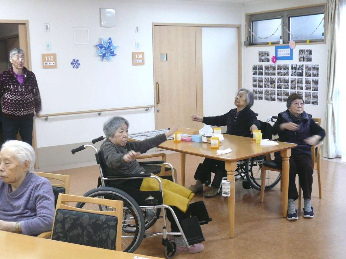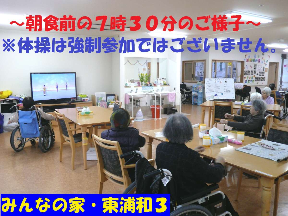 ※みんなの家・東浦和3では通常、朝食前の体操のみ実施しておりません。今回は時間に余裕がある際の日常の風景になりますのでご了承ください。