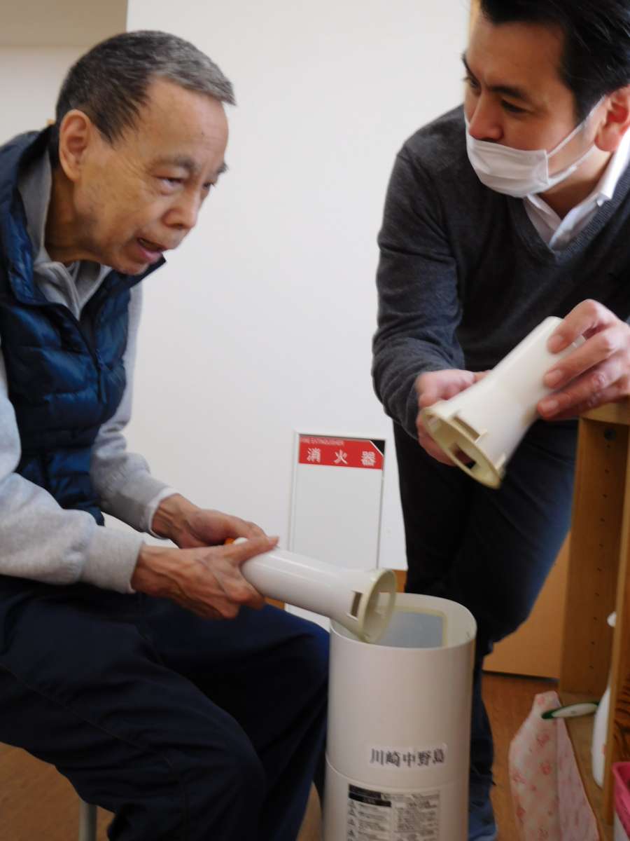 「こっちのほうがよくとれるよ」と入居者様がドライバーを