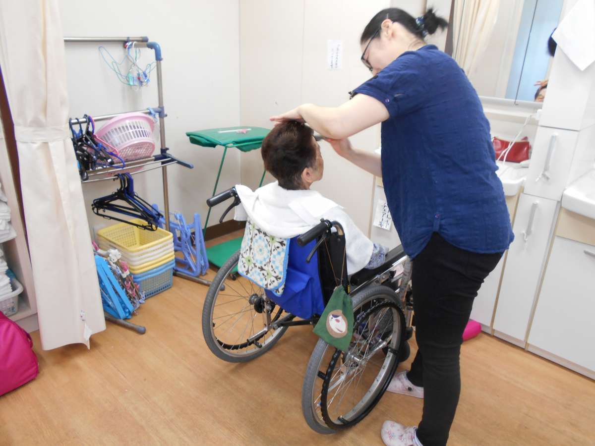 ご利用者のみなさんも、概ね2~3ヶ月に1度、伸びた髪をカットしてもらったり、カラーやパーマなどで気分転換を図っています。