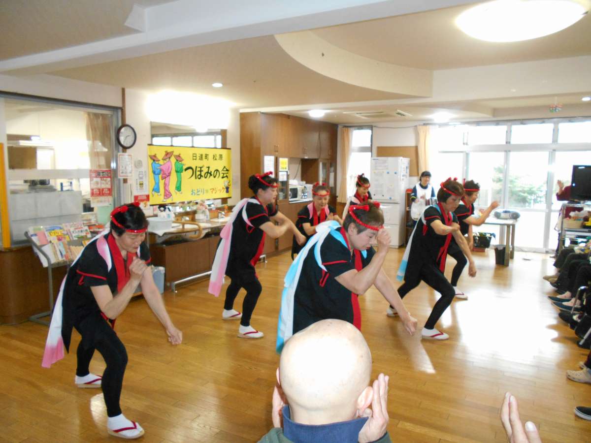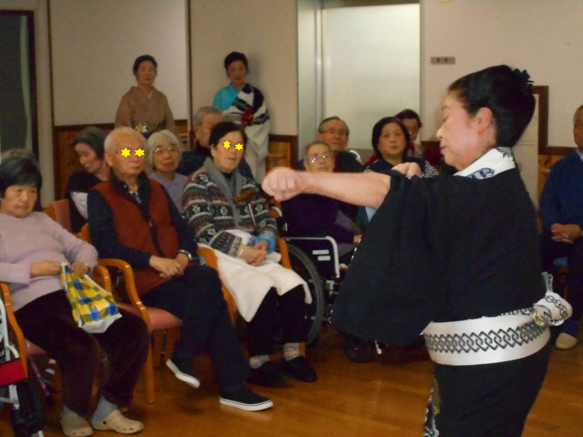 「つぼみの会」の訪問で、お誕生日会もさらに盛り上がり、それを聞きつけたご近所の方や自治会の方々も一緒になってショーを楽しまれました。