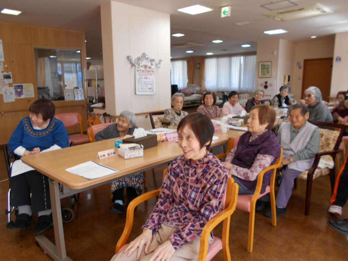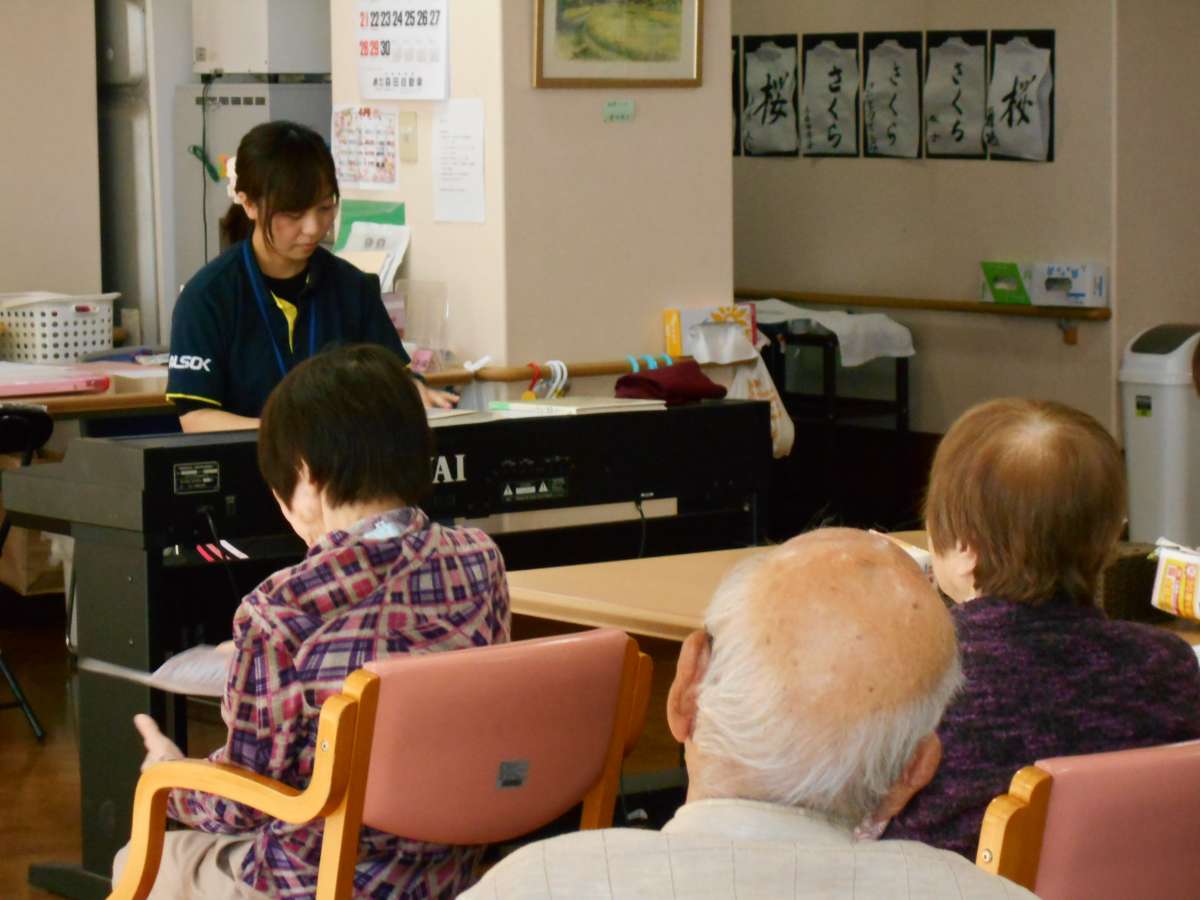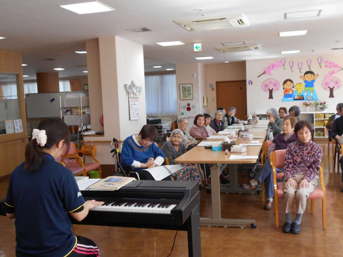 本日のレクは、職員のピアノ演奏に合わせてみなさんで