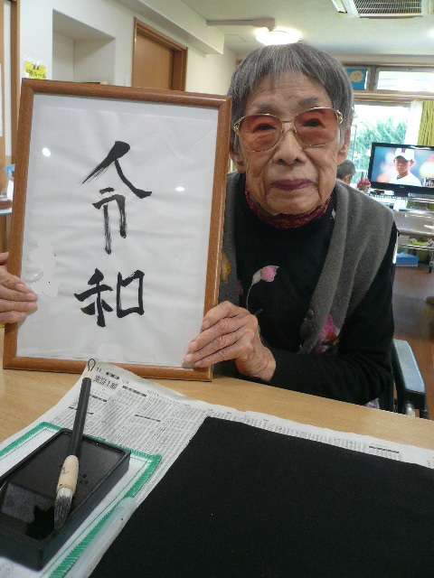 ご入居者様のみなさまに、新元号を書にしたためていただきました。