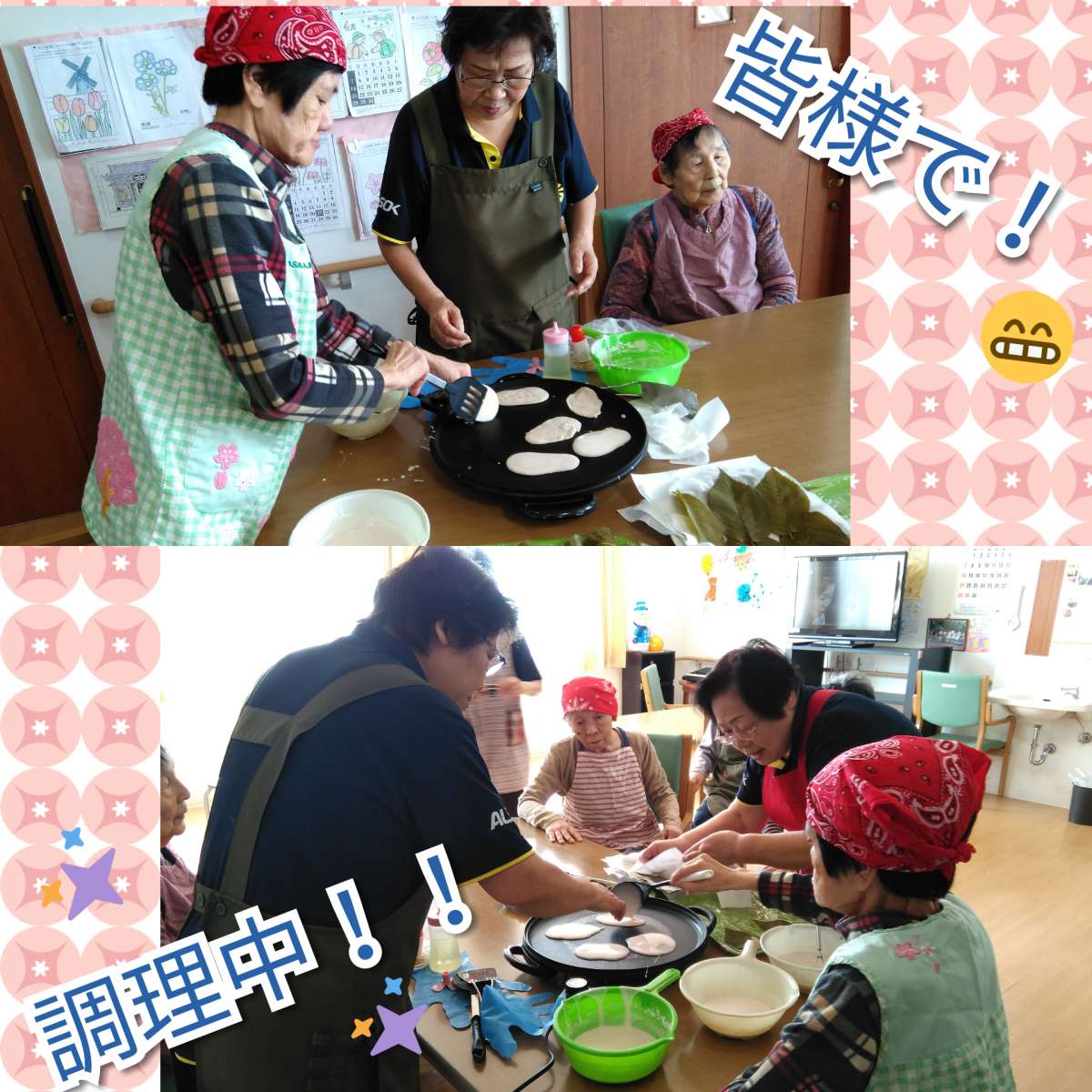 1・2階共に桜もちを作りましたが、作り方が異なり、