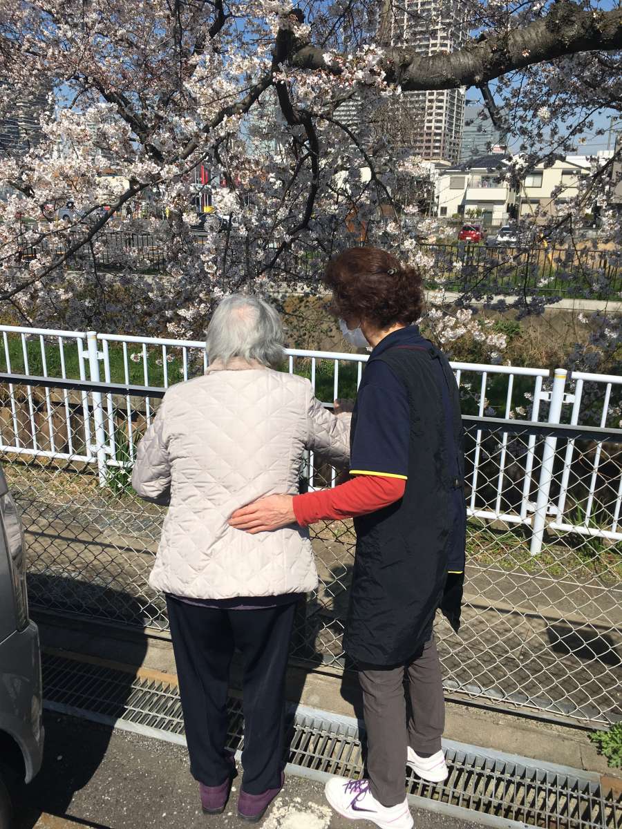 本町では皆さんでお花見を行いましたが、まだまだ居室から川沿いの桜が見えてお花見気分を味わえます!