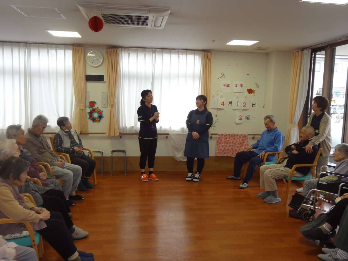 様子でした。利用者様は、皆さん元気に声を出し身体を動かしていました。みなさんこれからも頑張りましょう。
