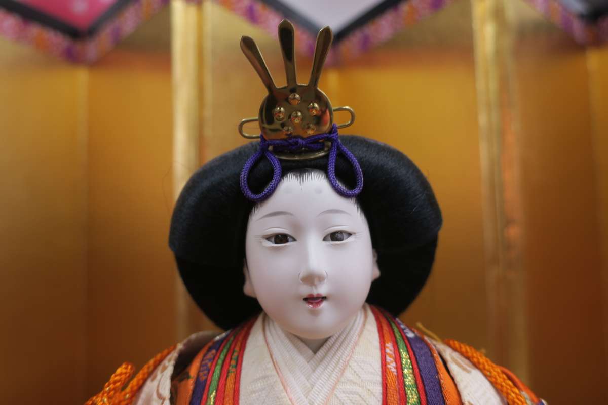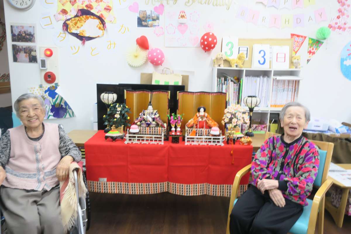 当ホーム秘蔵のひな人形の前で撮影です。立派でしょ~。
