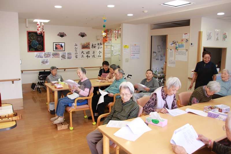 こんにちは、グループホームみんなの家 西東京です。本日は、グループホーム西東京では初の尺八演奏会の紹介です。本日のボランティアの方は、小平に住まわれているのですが、ボランティアの申し込みをウイズネットの戸田にある本部に連絡された、律儀なボランチアさんです。あまり大人数のところではなく小規模なこじんまりと、尺八の音色を聴いて頂きたいとの希望があり、今回はグループホームのご利用者様に体験していただきました。16曲フルコーラスを皆様と一緒に歌われ皆様大満足されておりました。尺八の演奏なので、民謡から、唱歌、懐メロ、歌謡曲いろいろ唄い約1時間シブい音色にあわせて合唱しました。
