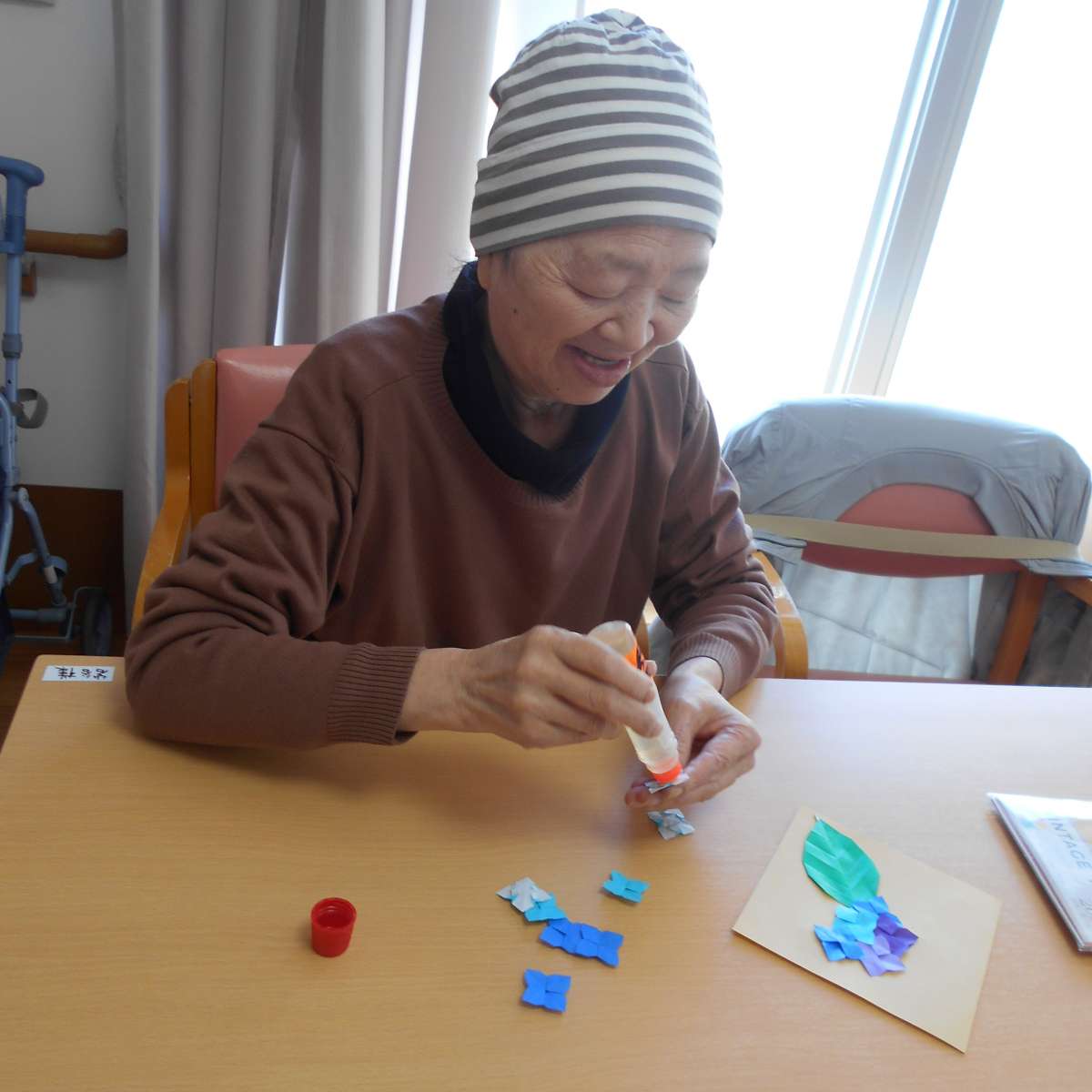 を考えながら小さな花びらや葉っぱを糊付けされていました。