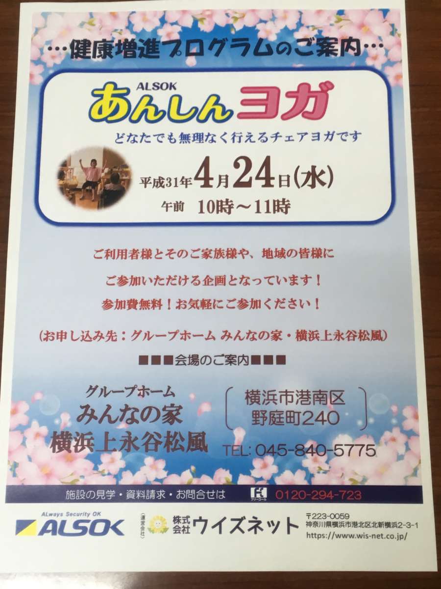 4月24日(水)は『ALSOKあんしんヨガ』を行います。
