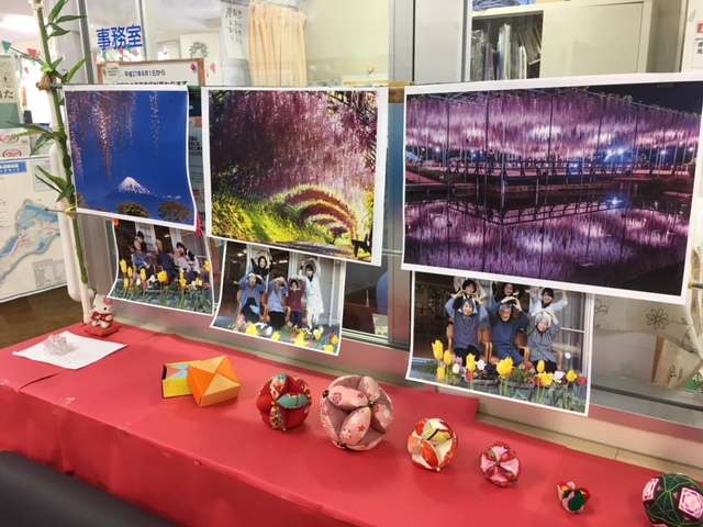 玄関を藤の花で装飾したので写真も加えて「藤の花コーナー」を設置!