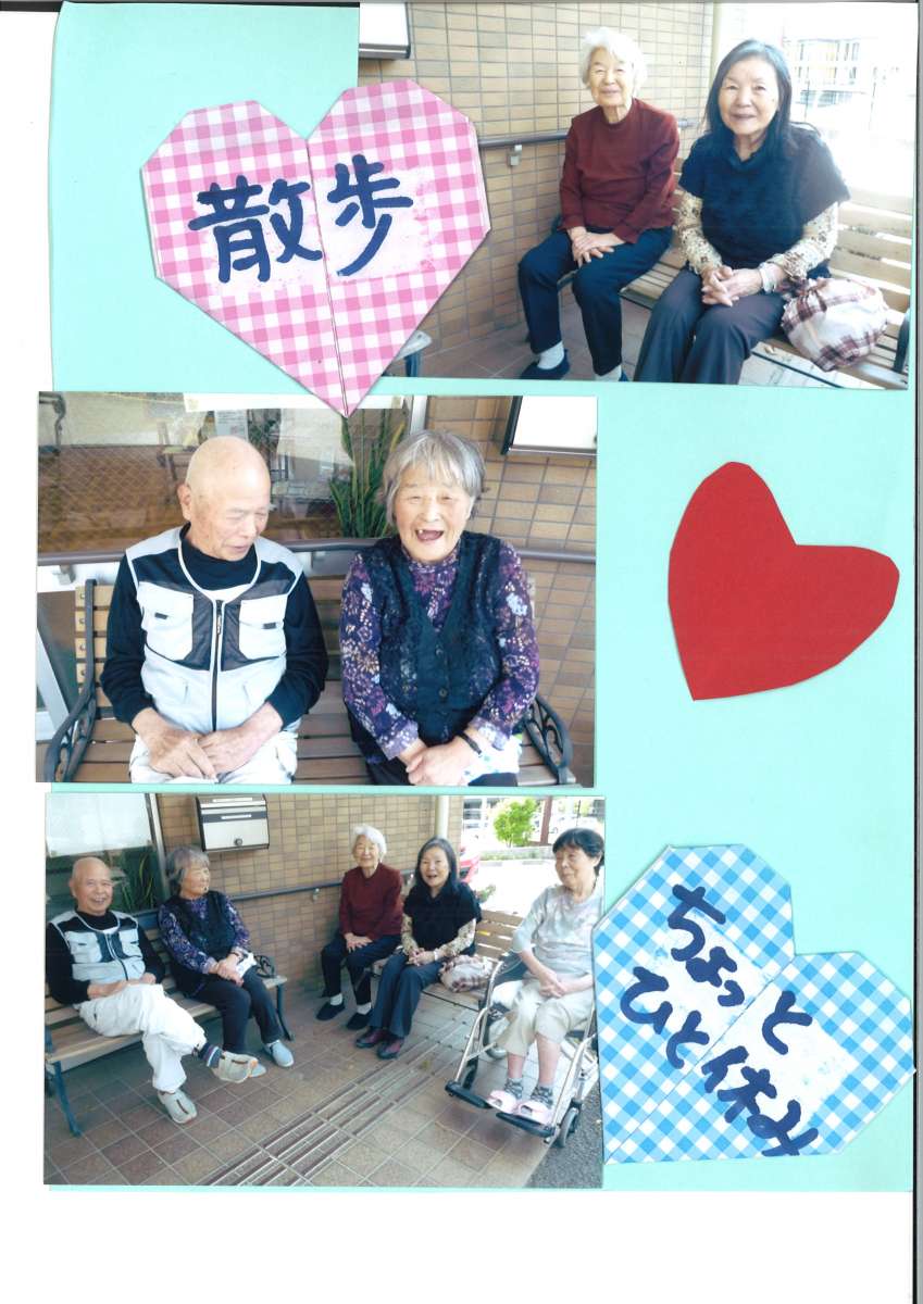 1階2階の利用者様、合同で散歩されました。