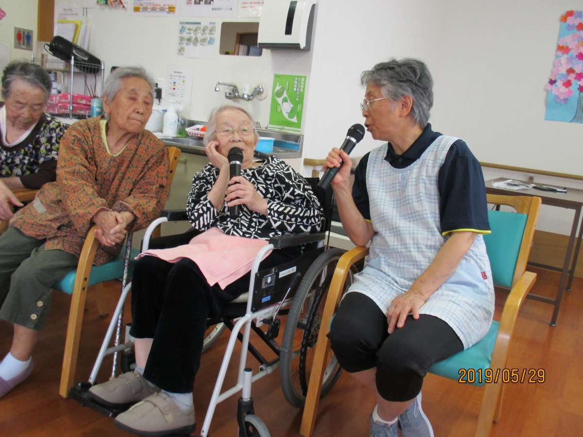 いました。一人で6曲歌う利用者様もいました。今日は、散歩に行く予定でしたがイマイチの天気でしたので