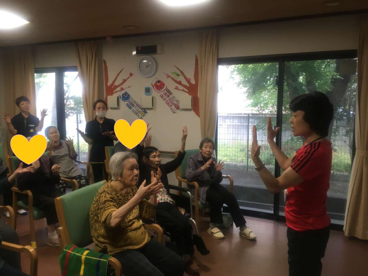 今回は、ご家族様と野庭地域ケアプラザの職員さんもお越し下さり、一緒に~いきいきリズム体操~をして下さいました♪(^^)(^^)♪
