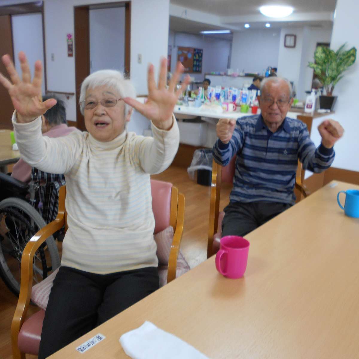 ◎集団体操、口腔体操、早口言葉、脳トレも行いました♪