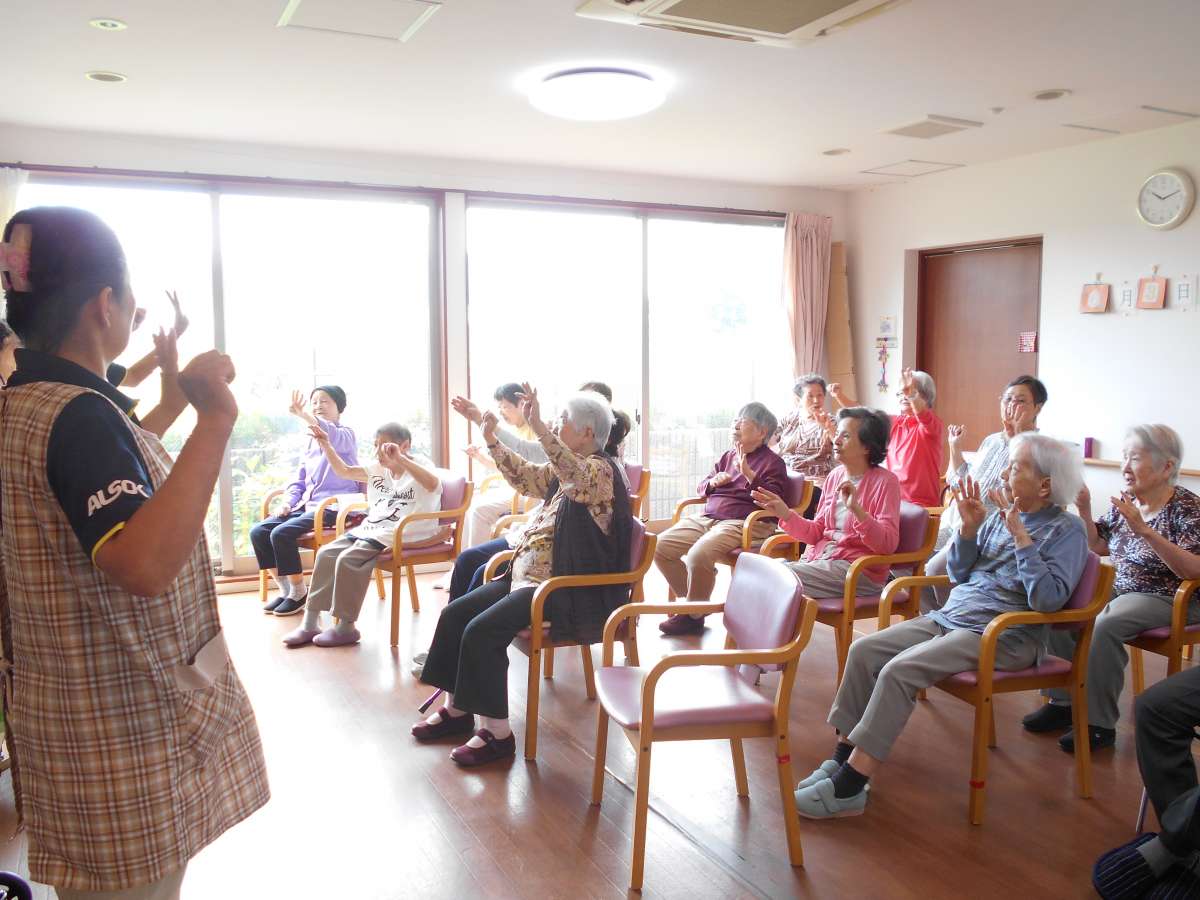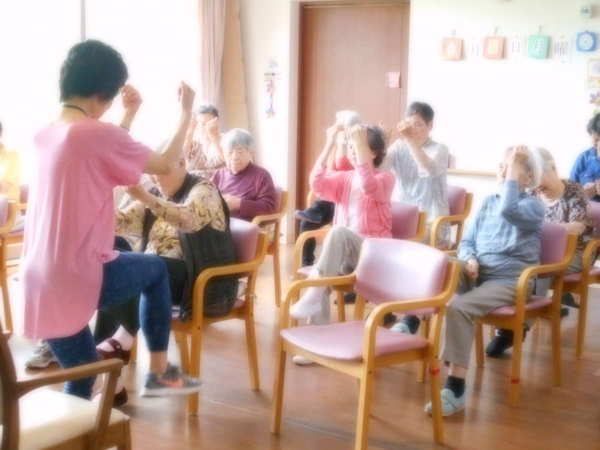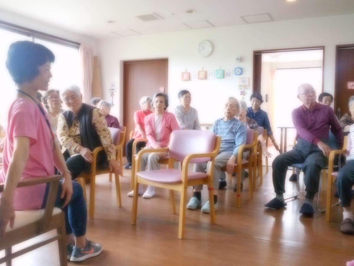 最初に挨拶をしてから体調確認、日付の確認をしてから指折りで数を数えて下肢の体操をしてからチェアヨガです