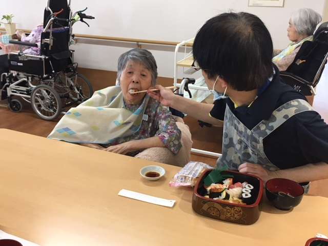 美味しそうにお寿司を召し上がっている姿を