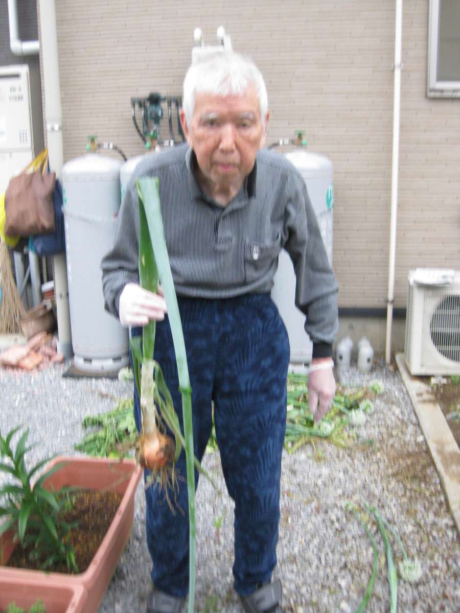 おばけみたいに延びてしまったネギ坊主をムンズ、、と掴み、