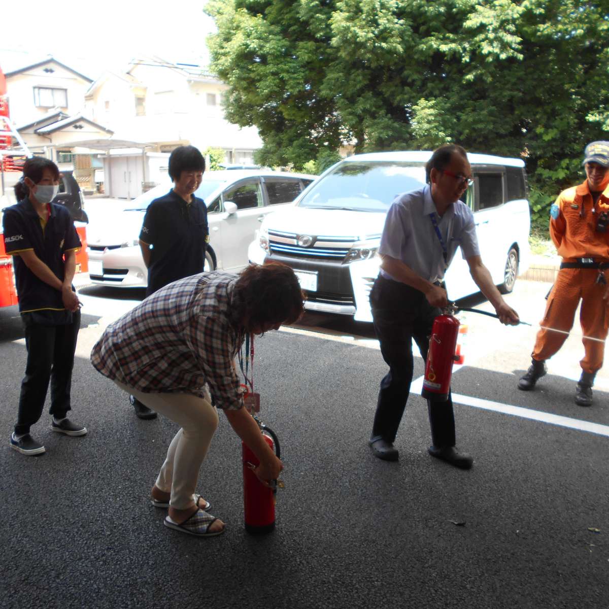 その後、消防士さんより消火器の使い方、通報の仕方をしっかりと教わりました。