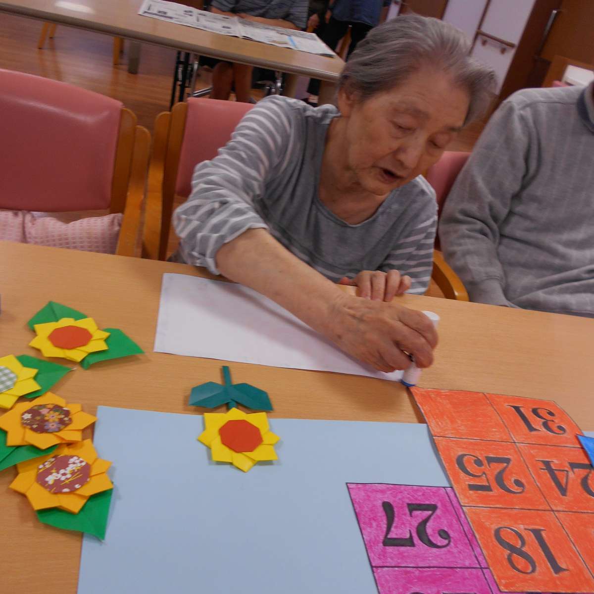 折り紙で製作した『ひまわり』も添えて♪完成(*^▽^*)