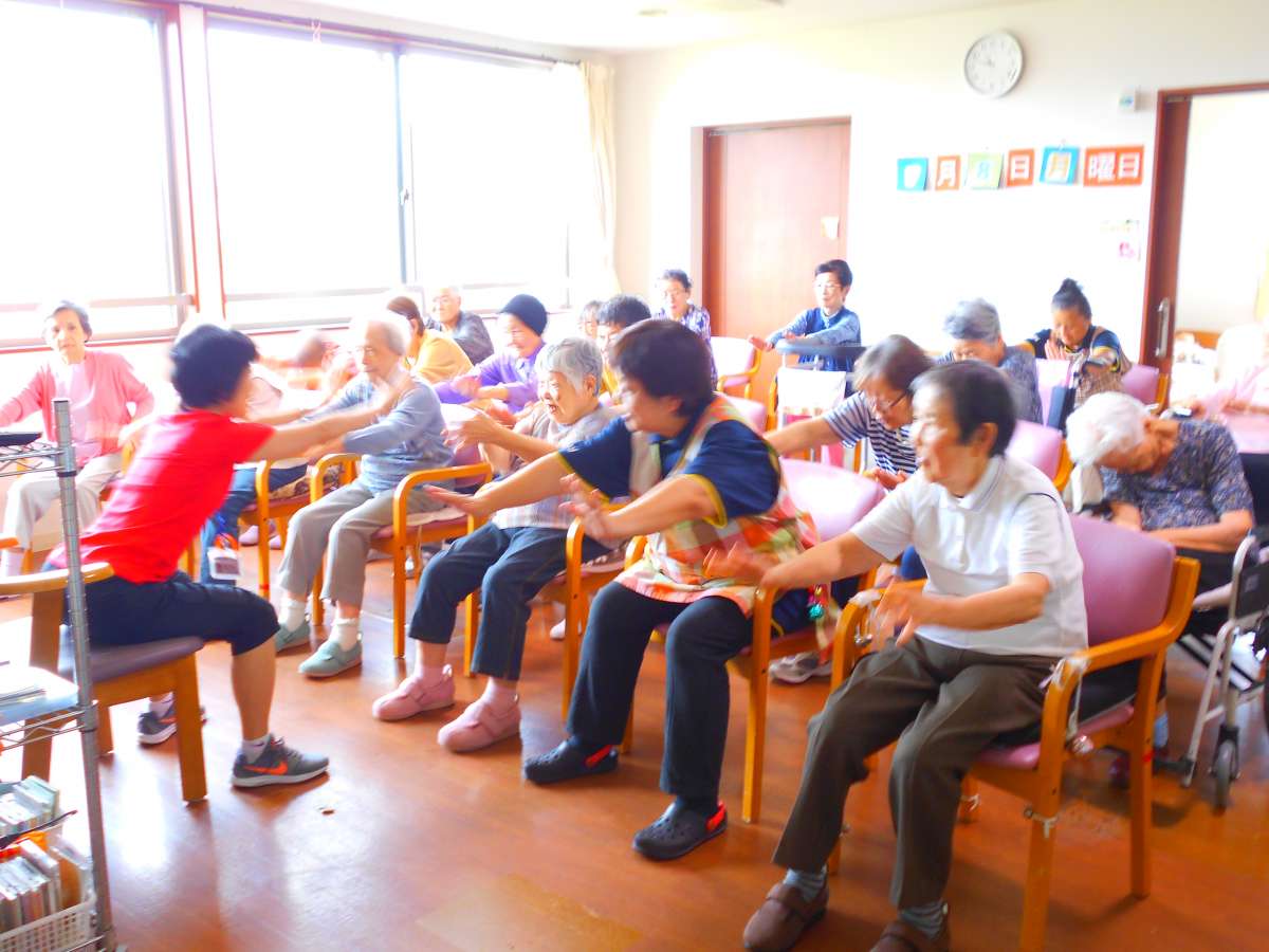 初めて2階で行いましたが、地域の方も参加して下さり皆様いつもと変わらず元気よく体を動かされました(^^♪