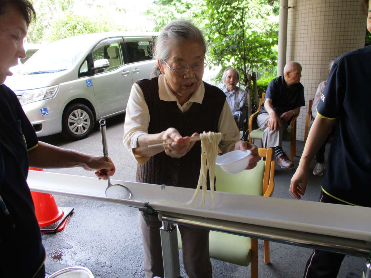 梅雨明け間近の7/26、デイサービスセンター遊・西東京では恒例の"流しソーメン大会”が行われました。今年7月の気候は昨年と比べるまでもなく、例年になく"雨"が多く、とてもソーメンを食べる雰囲気ではなかったように思います。やっと待望の"青空と太陽"が顔を出してくれたので、さっそくご利用者様と"流しソーメン”にのぞみ、大いに楽しく盛り上がって頂きました!!
