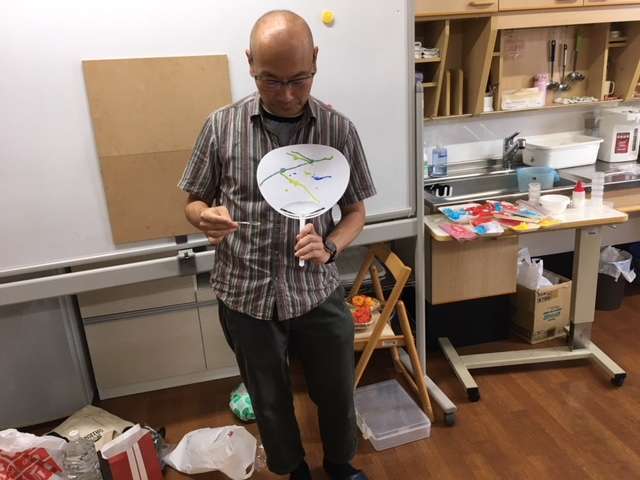 皆様のうちわの上に色んな線が描かれました。