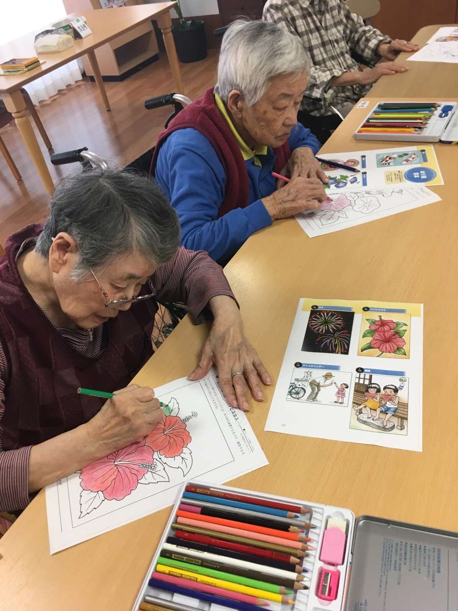 ◎季節のお花の塗り絵に取り組まれる方