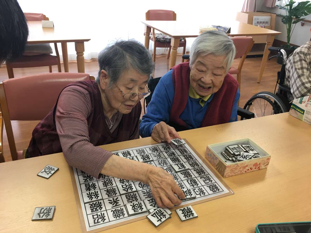 ◎漢字パズルに真剣に集中される方←ダンボールで手作りした職員の励みになります(*^_^*)