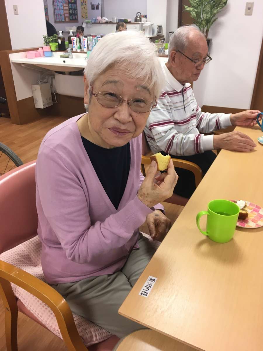 ◎午前中に一階の入居者様と職員と手作りした焼きたてのパウンドケーキ☆を召し上がりました(●^o^●)