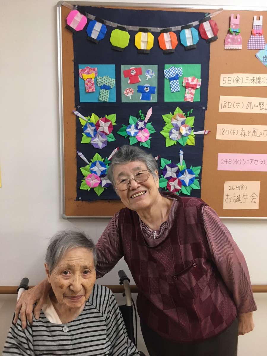 さて、二階フロアには入居者様と一緒に制作した、季節の壁画や折り紙が沢山飾ってあります(๑˃̵ᴗ˂̵)