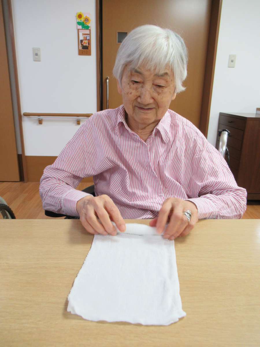 ◉指のリハビリも兼ねて、おしぼりを丸める作業を手伝ってくださる方☆