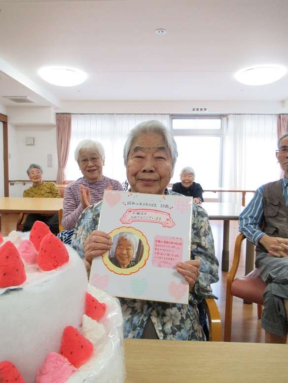 職員手作りの色紙をプレゼントした後、利用者の皆様と歌でお祝いさせて頂きました。