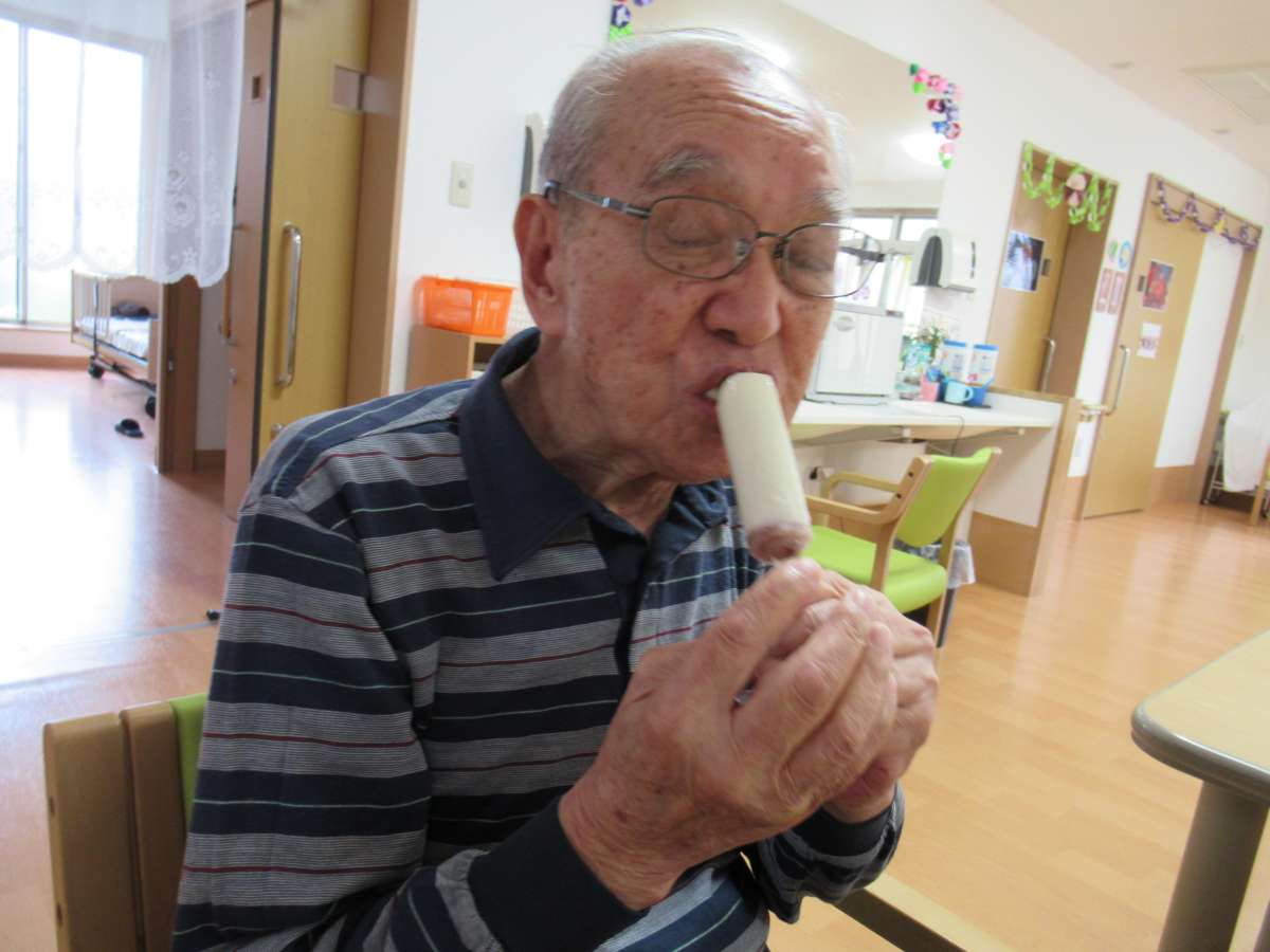 こんにちは、みんなの家・内野本郷です\(^o^)/ 台風一過が過ぎて暑いですね… 外がムシムシしてたので、おやつ前に冷たい物をペロリ(^з^)- 「冷たい~」 『こういうのもいいですね(^^)』 と話しながらアイスを頂きました!