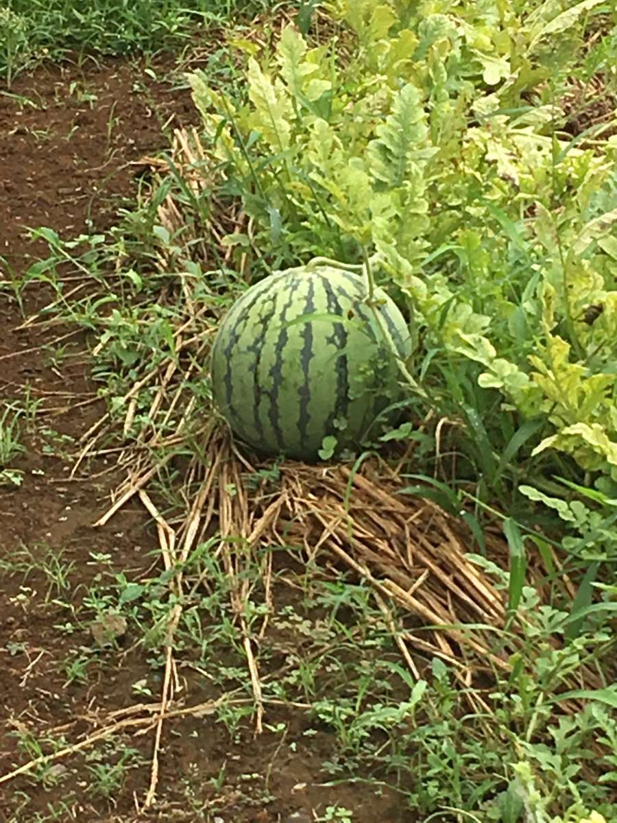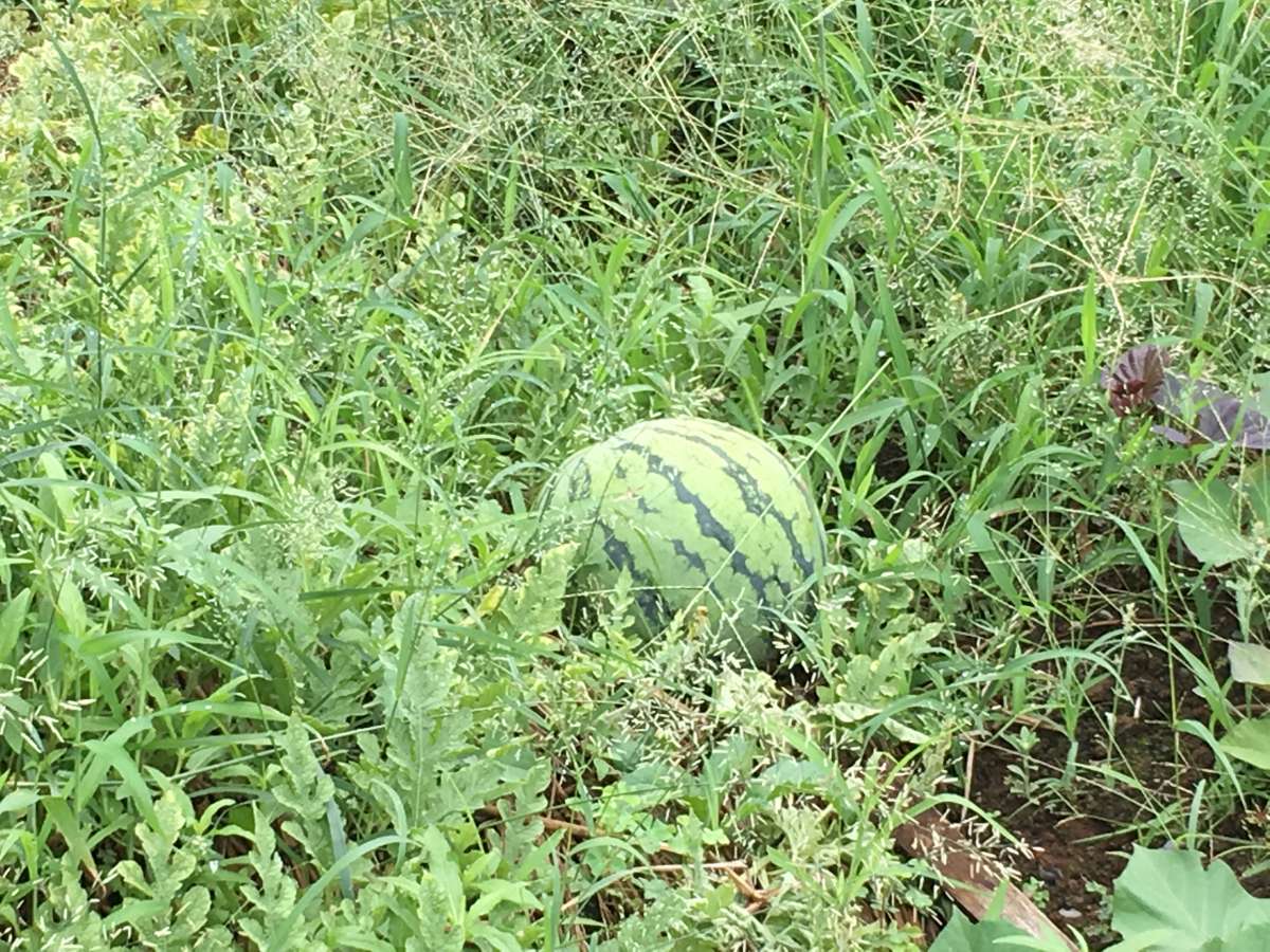 散歩に出かけました。そしたら、ご近所の畑にビックリするほどのスイカがありました。