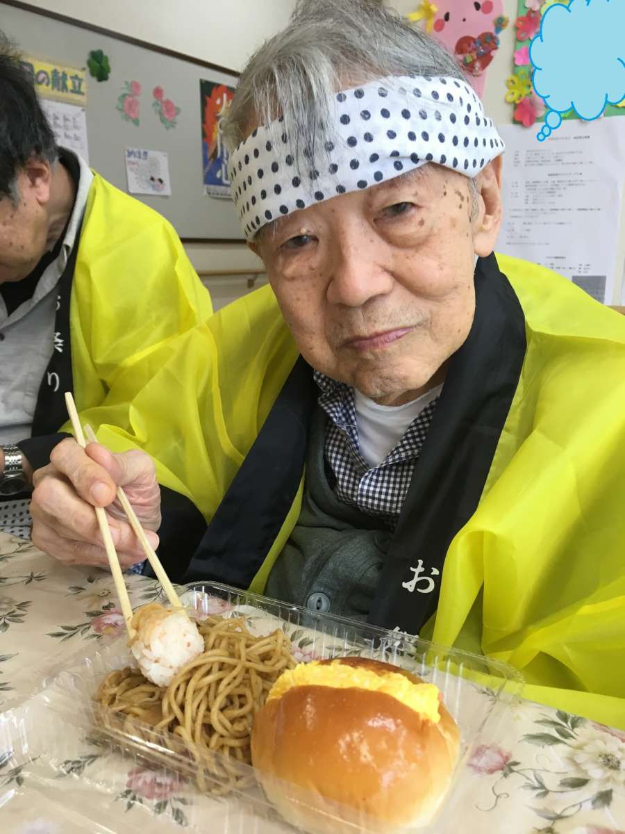 焼きそば・たまごサンド・ミニおにぎり・きゅうりの浅漬け・水ようかん