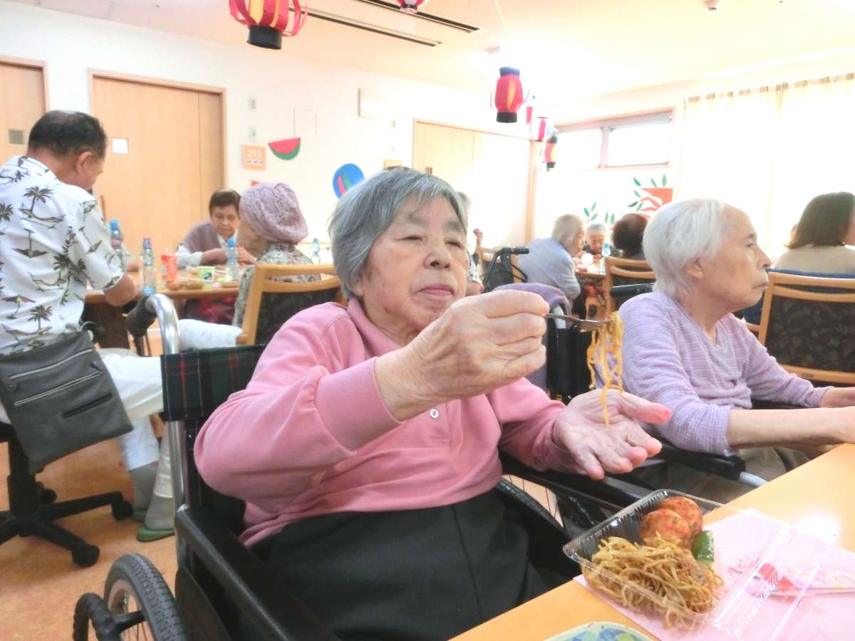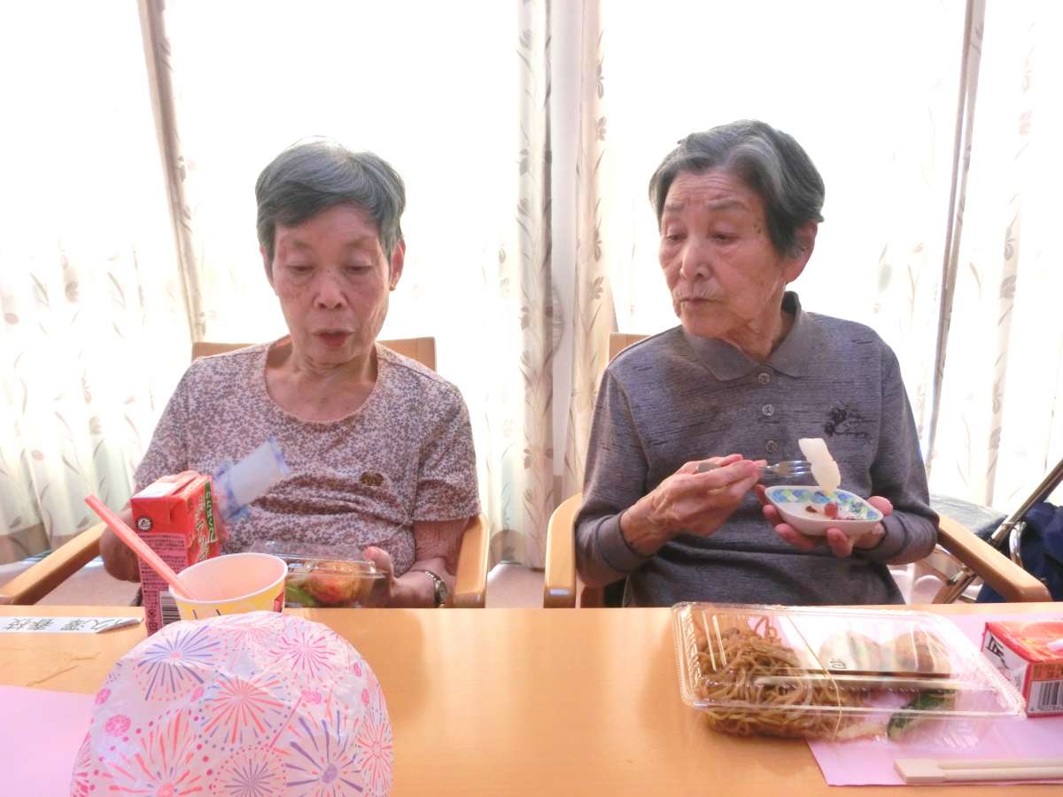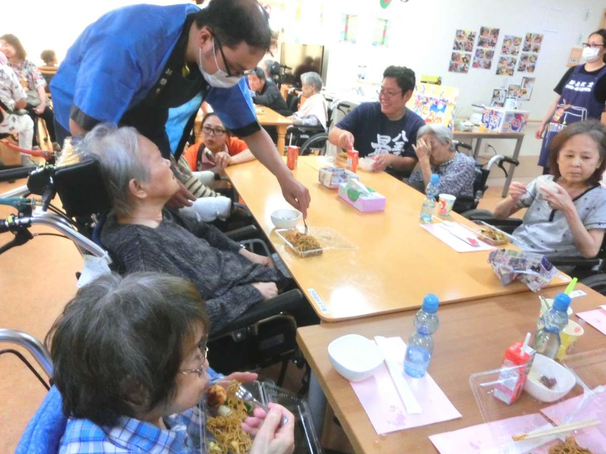 たこ焼きは途中、MK様のご家族様がたこ焼き担当の職員とバトンタッチし上手に焼いて下さいました!